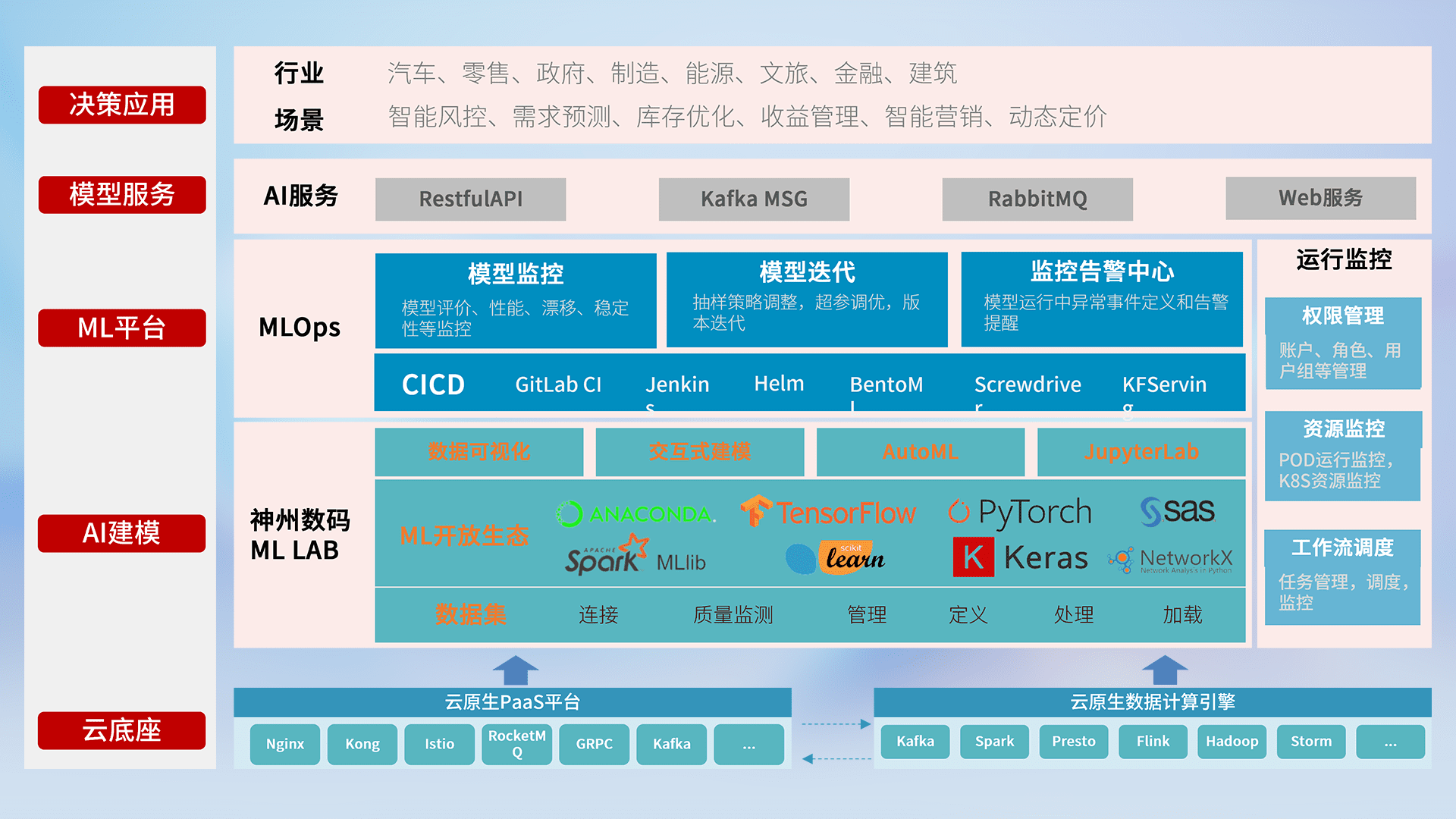 数据+模型双引擎驱动,,面向智能服务场景,,快速灵活利用AI技术,,支持业务决策,,助力企业智能化转型破局。。